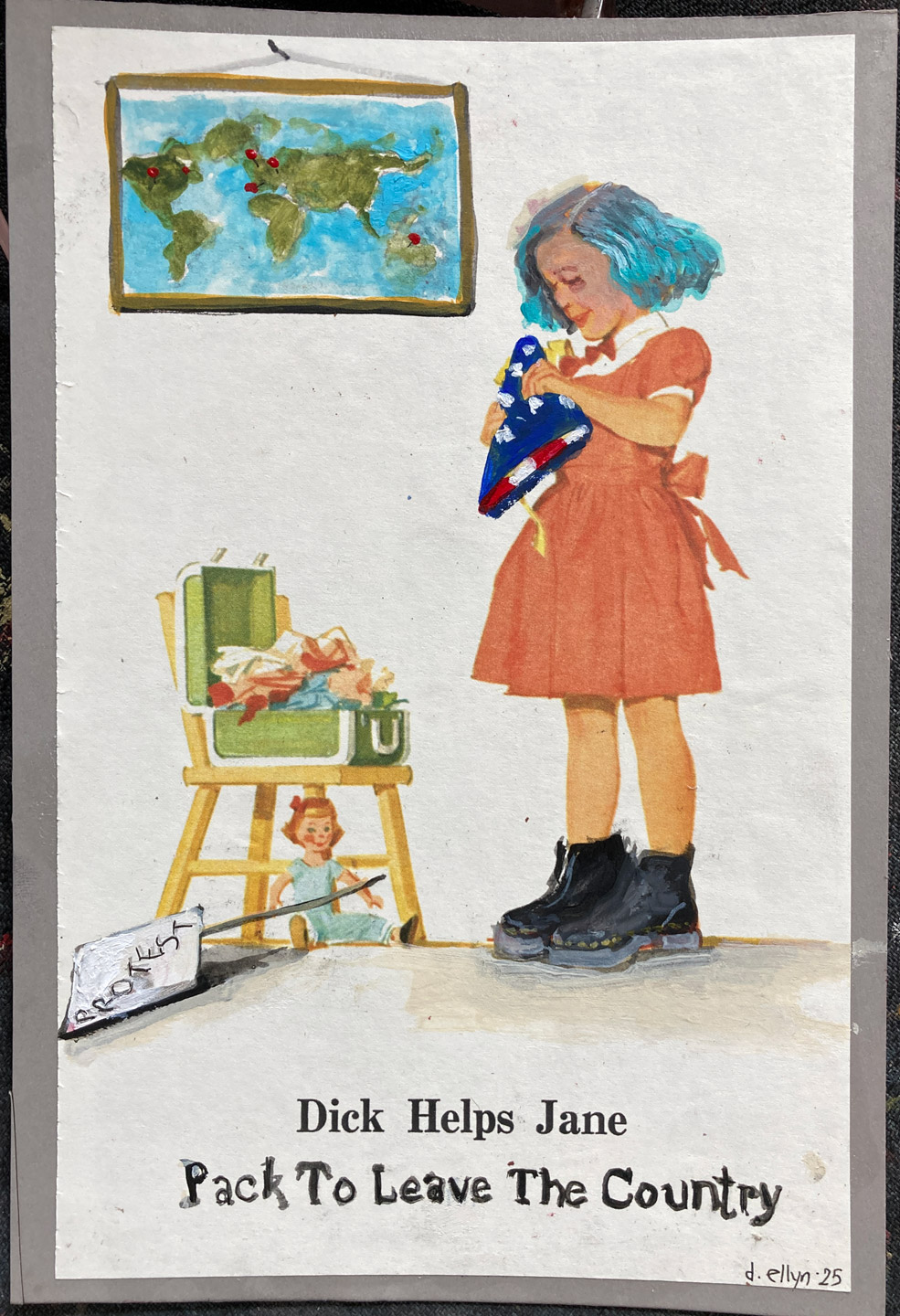 acrylic on Dick & Jane page (mounted on board)