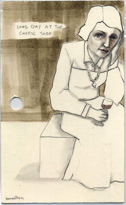 The Cheese Shop 3"x5" Pencil & ink on recycled library cards SOLD