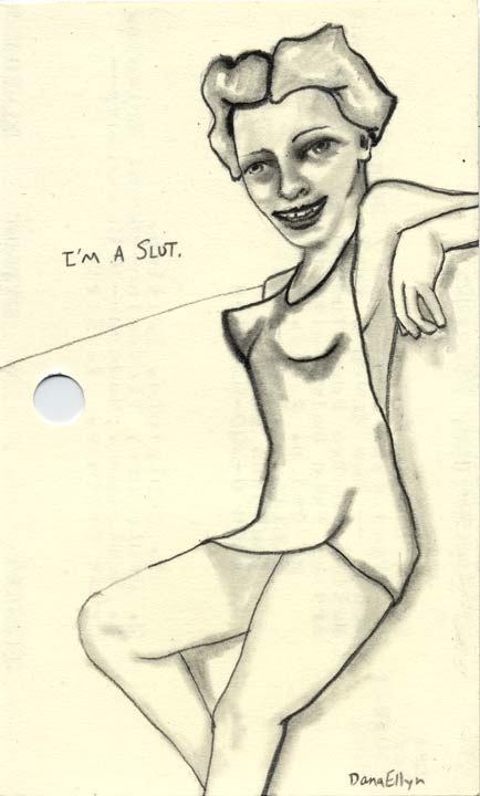 I'm a Slut 3"x5" Pencil & ink on recycled library cards SOLD