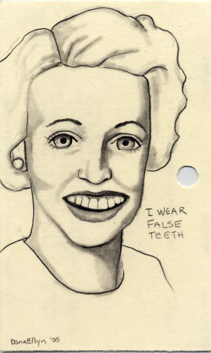 I Have False Teeth 3"x5" Pencil & ink on recycled library cards SOLD