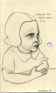Learning the Truth... 3"x5" Pencil & ink on recycled library cards SOLD