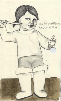 The President Said... 3"x5" Pencil & ink on recycled library cards SOLD