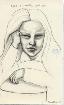 She's a Looker... 3"x5" Pencil & ink on recycled library cards SOLD