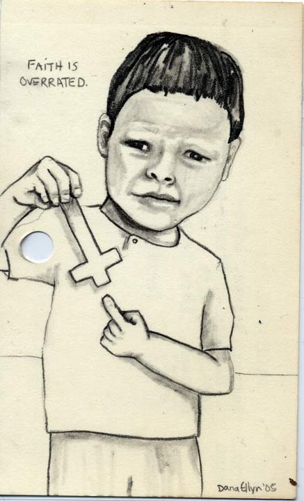 Faith 3"x5" Pencil & ink on recycled library cards SOLD