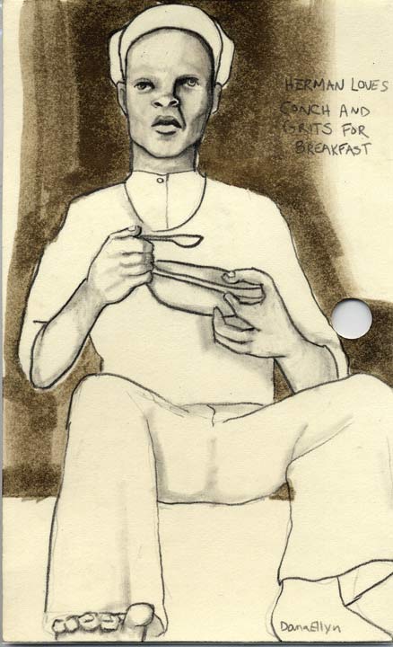 Conch Shell 3"x5" Pencil & ink on recycled library cards $40
