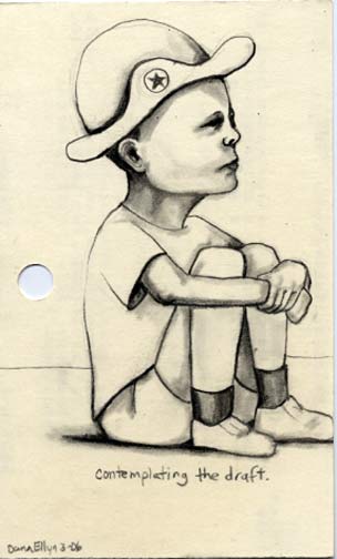 Contemplating the Draft 3"x5" Pencil on recycled library card