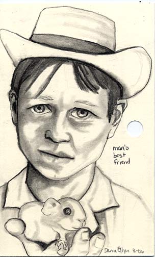 Man's Best Friend 3"x5" Pencil on recycled library card