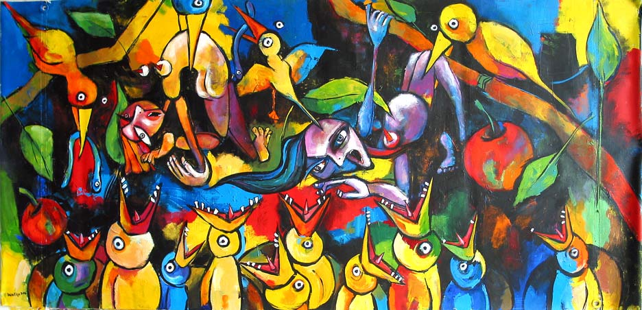 Early Bird Catches the Worm 29"x60" Acrylic on banner