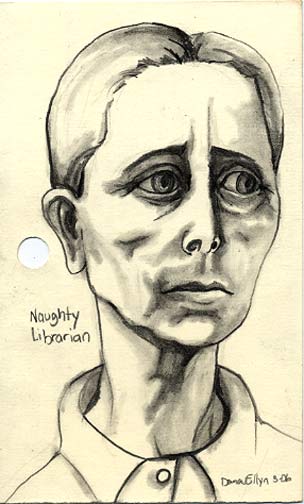 Naughty Librarian 3"x5" Pencil on recycled library card